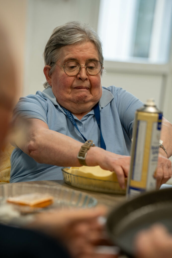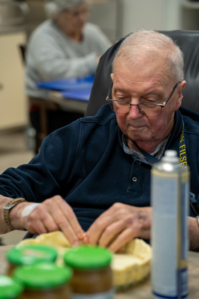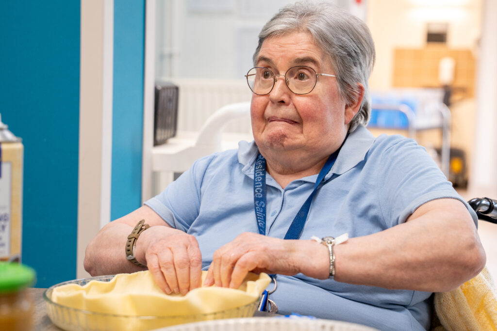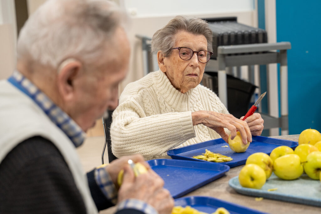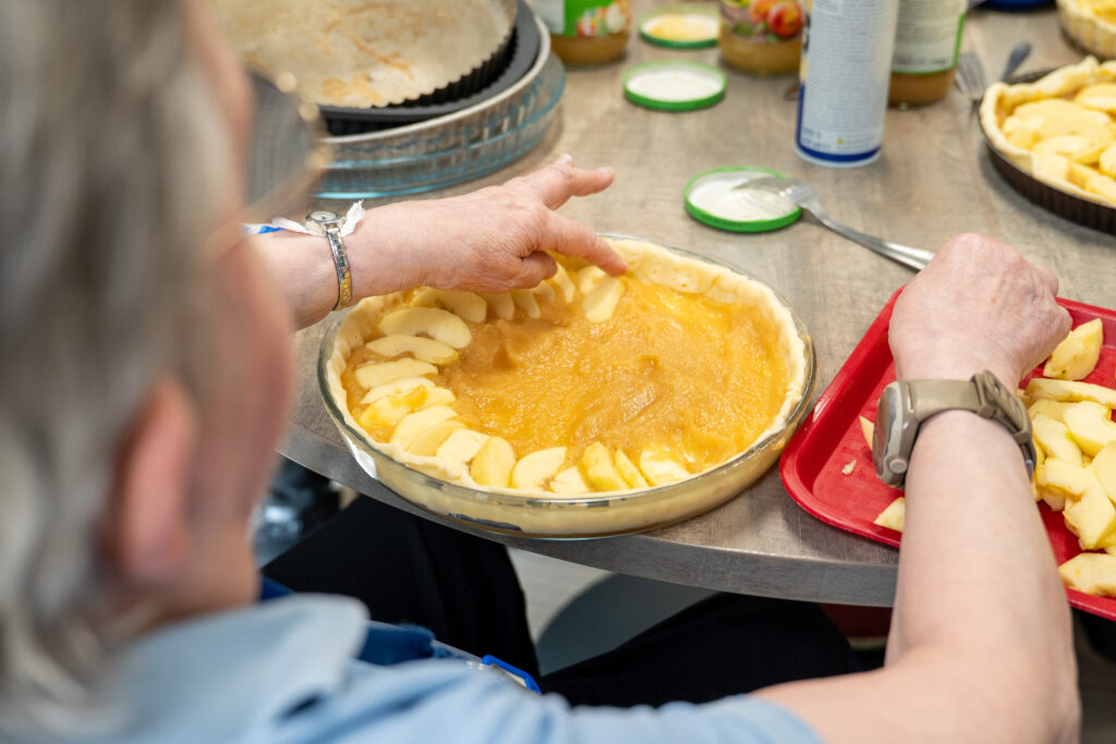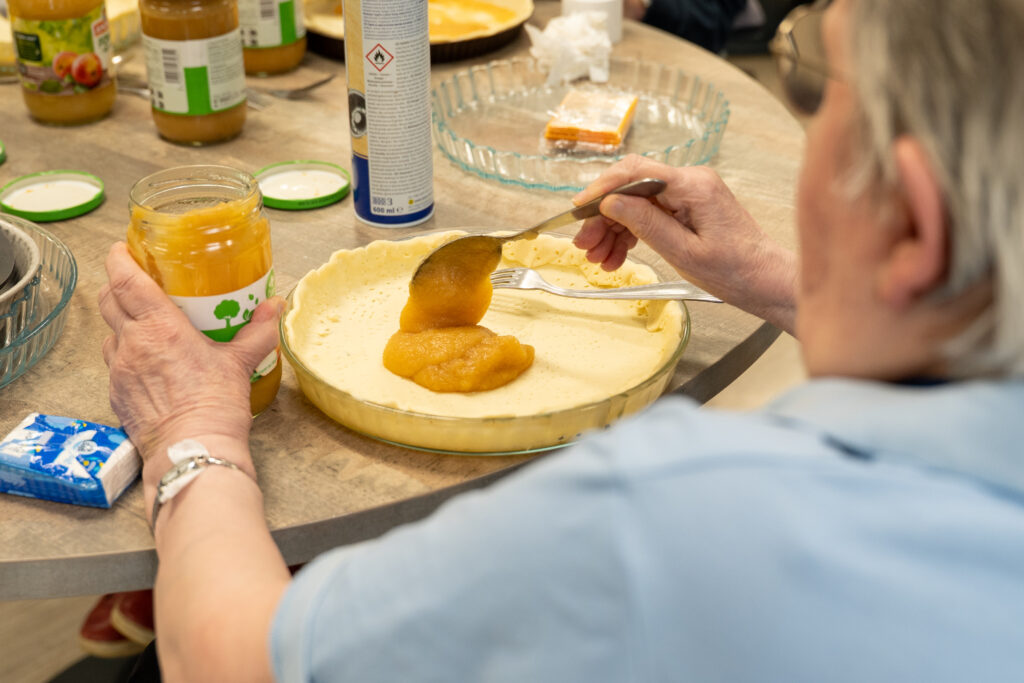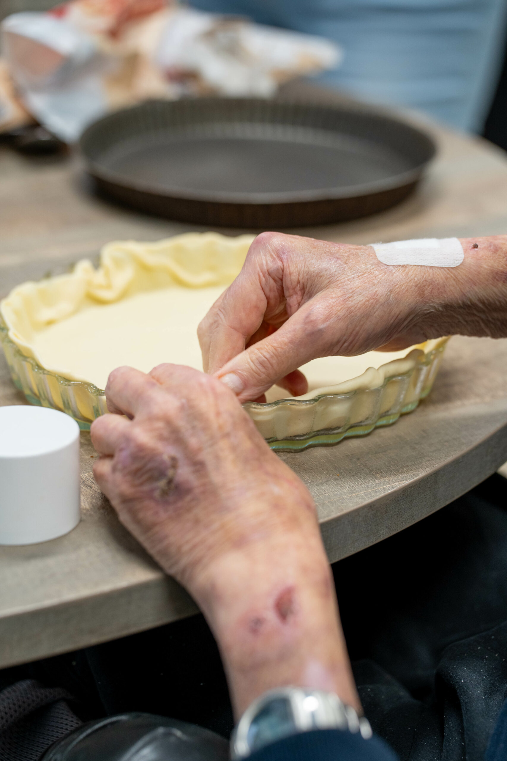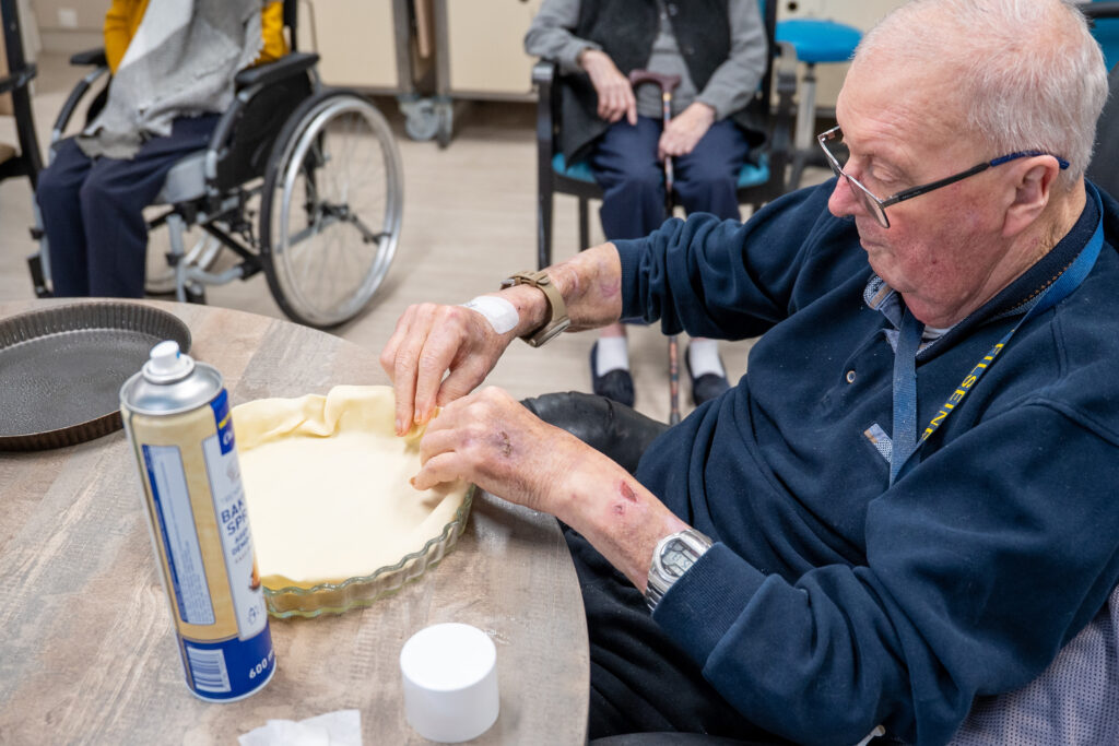 Les résidents ont participé à la préparation des tartes destinées au repas du soir, lors d’un atelier cuisine convivial et participatif.