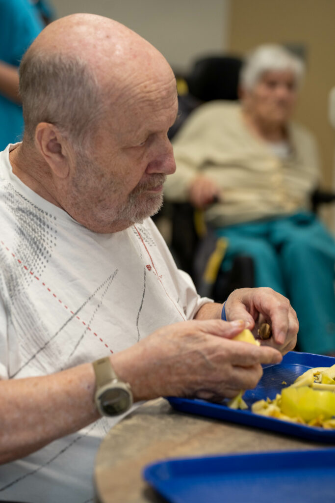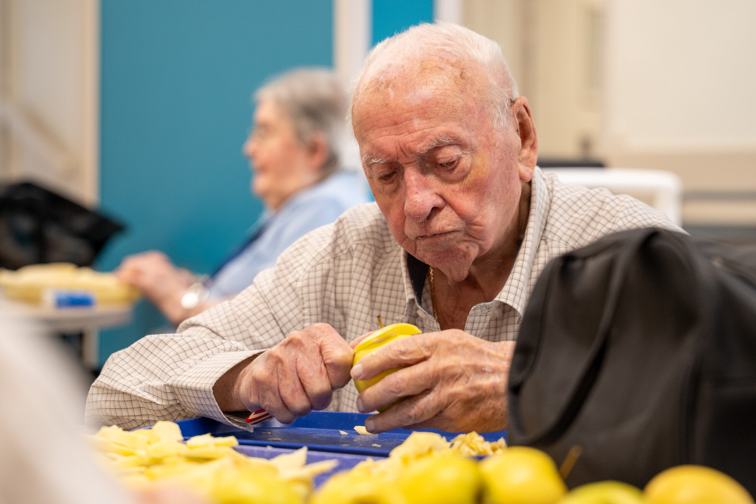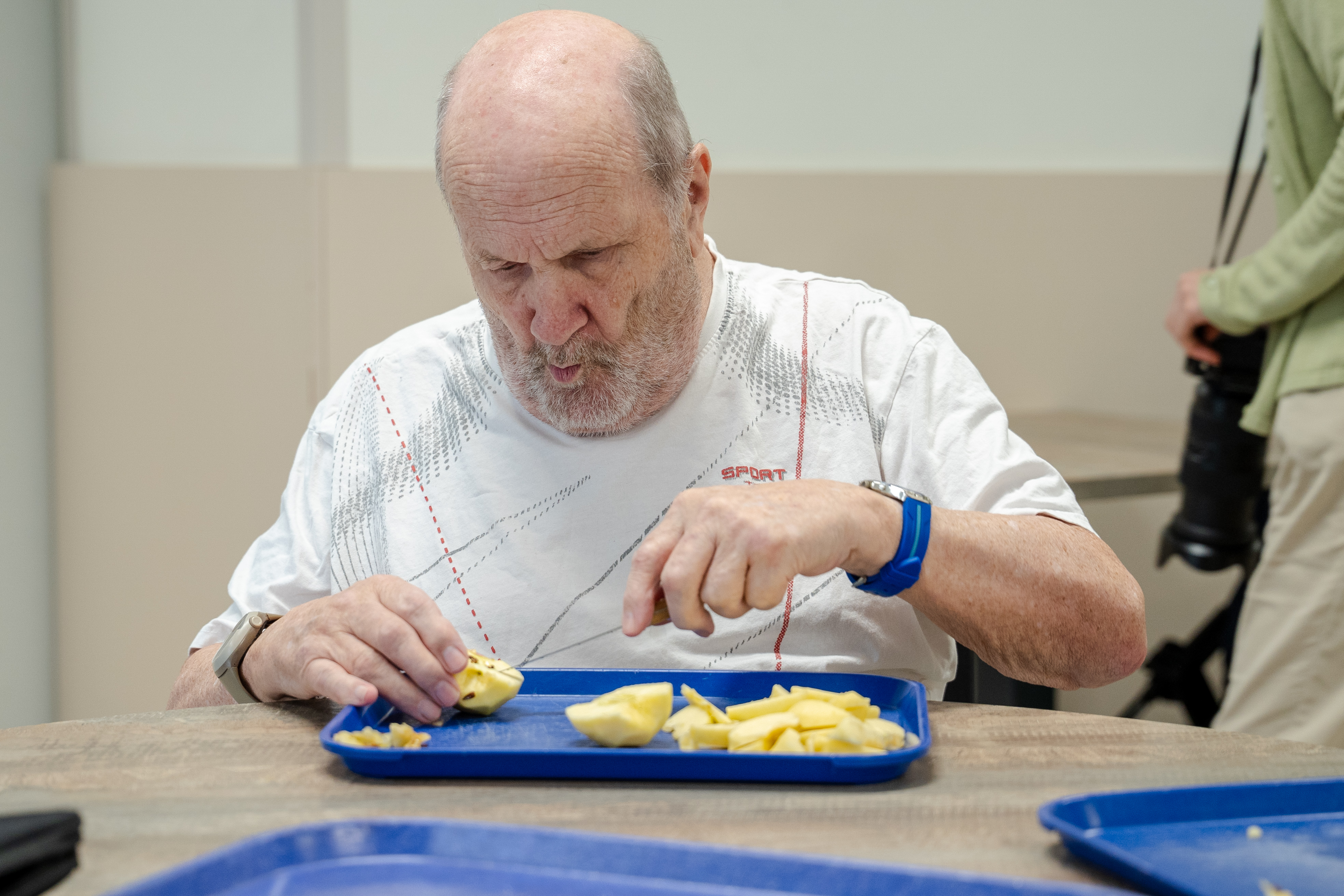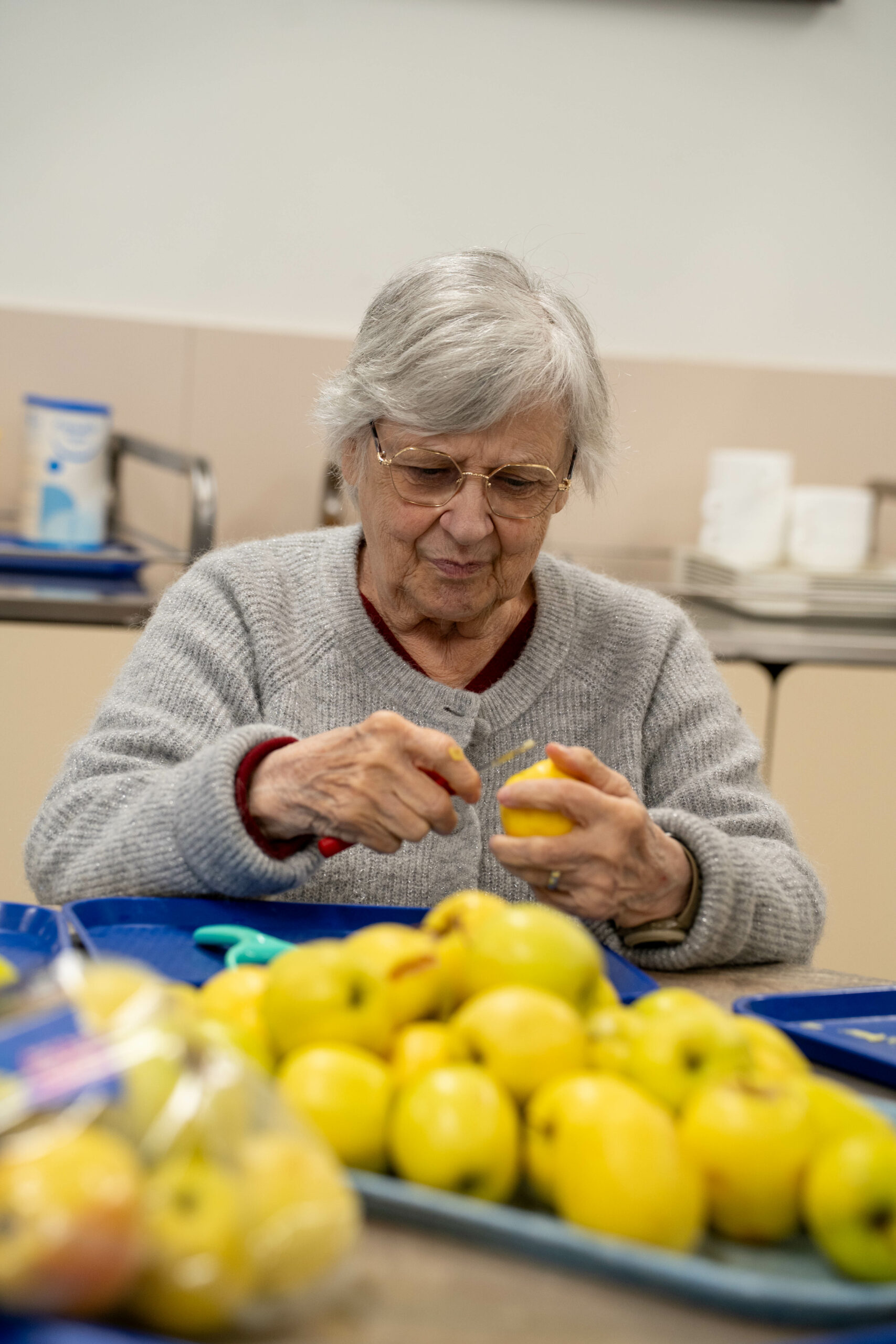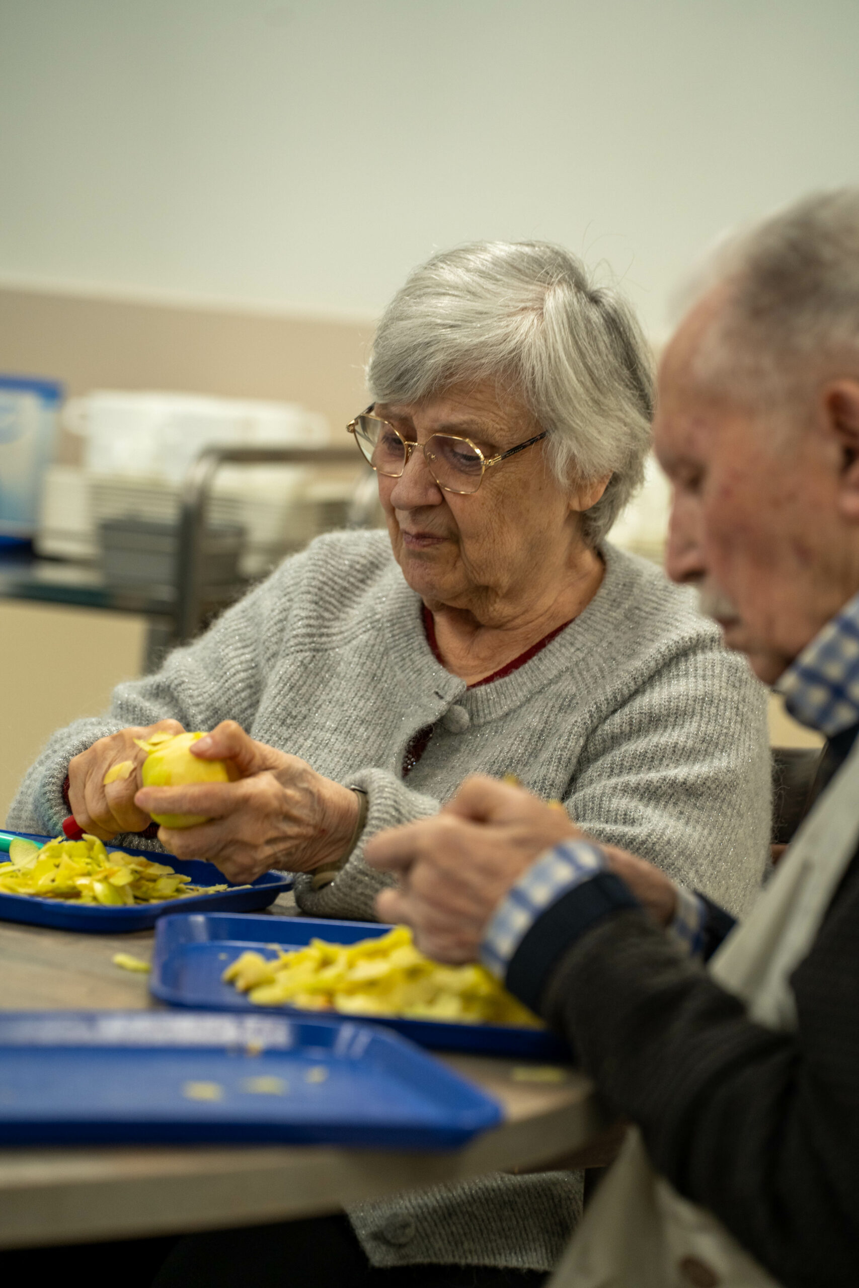Les résidents ont participé à la préparation des tartes destinées au repas du soir, lors d’un atelier cuisine convivial et participatif.