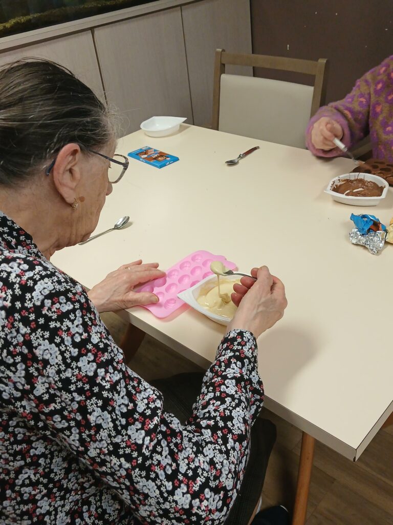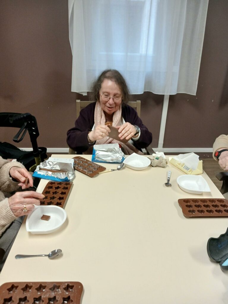 Les résidents ont fabriqué leurs propres chocolats… puis préparé des sachets avant de les cacher dans la résidence pour une chasse aux œufs ouverte à ceux qui souhaitaient participer. Un moment qui a fait plaisir aux gourmands !