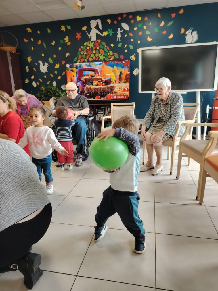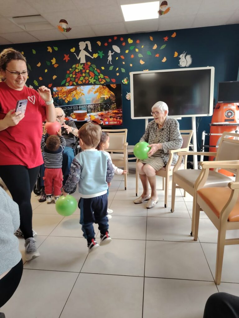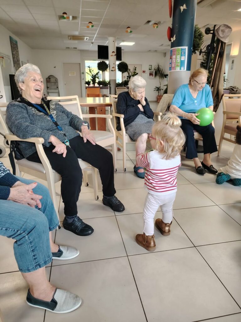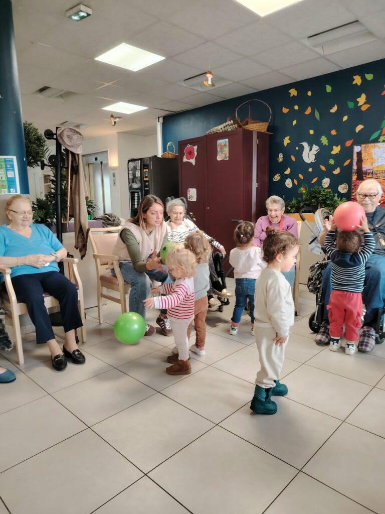 La résidence La Verte Colline a accueilli les tout-petits (18 mois – 3 ans) de la halte-garderie d’Ivry-la-Bataille pour un beau moment de partage avec les résidents.