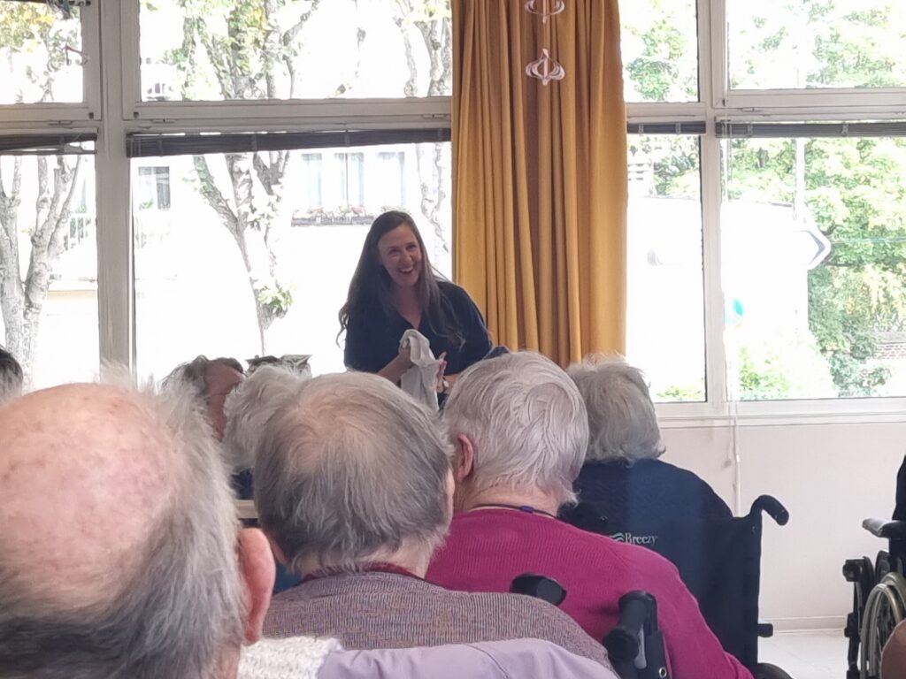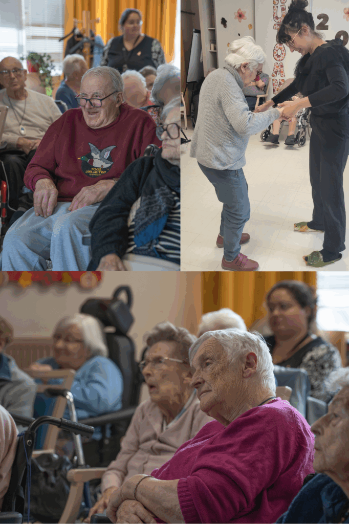 Pendant deux semaines, les artistes ont animé différents ateliers dans la résidence. Les séances proposées ont allié mouvement, expression vocale, travail de mémoire, jeux théâtraux et improvisations. Les résidents ont pu participer activement, à leur rythme, tout en découvrant de nouvelles formes d’expression créatives. Les artistes ont également partagé plusieurs repas avec les résidents, permettant de renforcer la proximité, la confiance et la qualité des échanges. Ces moments de convivialité ont contribué à créer une atmosphère chaleureuse et propice à la création.