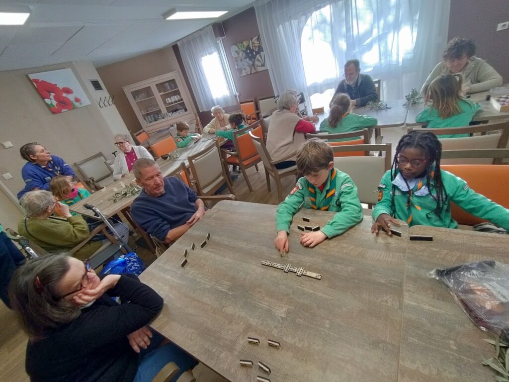 Les résidents de la Résidence Autonomie Les Faïenciers ont eu le plaisir d’accueillir un groupe plein d’énergie et de bonne humeur : les Scouts Farfadets (enfants de 6 à 8 ans) !